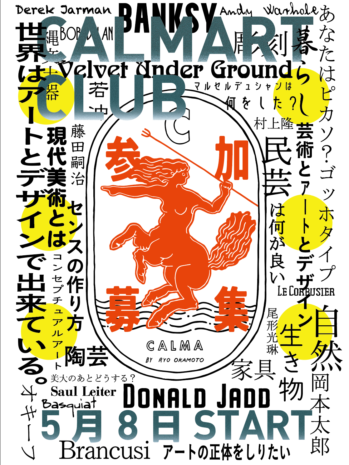 芸術は社会とどうつながっているのか?アートとデザインの活かし方をまなべる6ヶ月。カルマ・岡本亮がデザインやアートにどう関わっているのか、名作の成り立ちを紐解き、現代にどう役立てるのかを